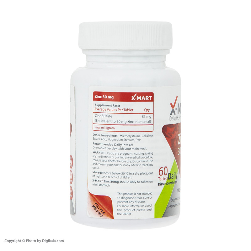 قرص زینک ایکس مارت - 30 میلی گرم بسته 60 عددی