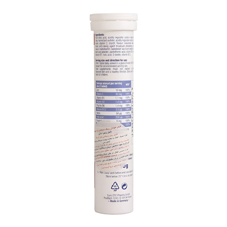 روزانه 1 عدد قرص جوشان زینک پلاس ب کمپلکس یورو ویتال را در آب حل کرده سپس میل شود.