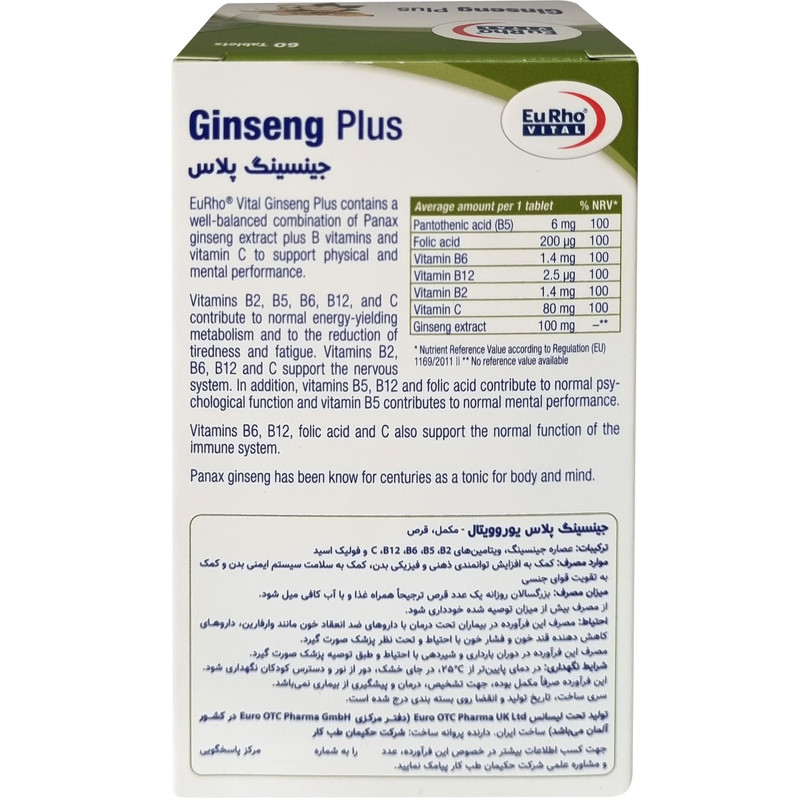 قرص جینسینگ پلاس یوروویتال بهعنوان یک مکمل روزانه برای افرادی که به دنبال افزایش انرژی، بهبود عملکرد ذهنی و مقابله با استرس و خستگی هستند، انتخابی بسیار مناسب است. یکی از ترکیبات اصلی این محصول، عصاره پاناکس جینسینگ است که از گذشته به عنوان یک تقویتکننده طبیعی در طب سنتی آسیا مورد استفاده قرار گرفته است. جینسینگ علاوه بر افزایش انرژی بدن، میتواند به بهبود تمرکز و حافظه کمک کند و عملکرد شناختی مغز را ارتقا دهد.