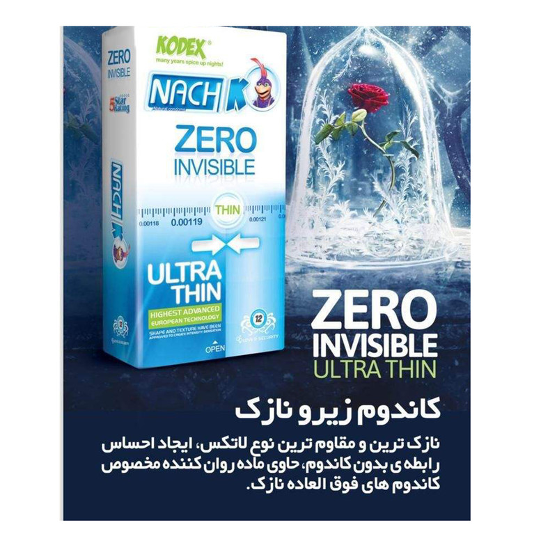 کاندوم ناچ کدکس مدل Zero Invisible مجموعه 2 عددی