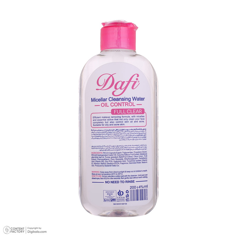 میسلار واتر دافی پوست چرب، متعادلکننده ترشح چربی پوست حاوی هیالورونیک اسید و رطوبترسانی عمیق به پوست دارای روغن درخت چای، ضدباکتری و ضد عفونیکننده پوست